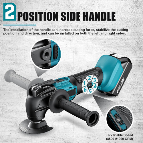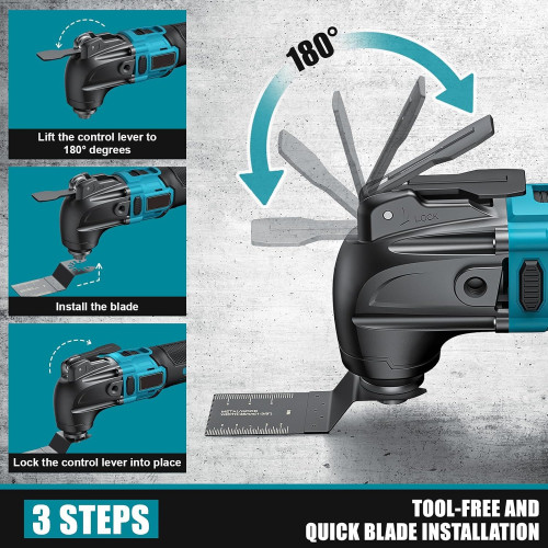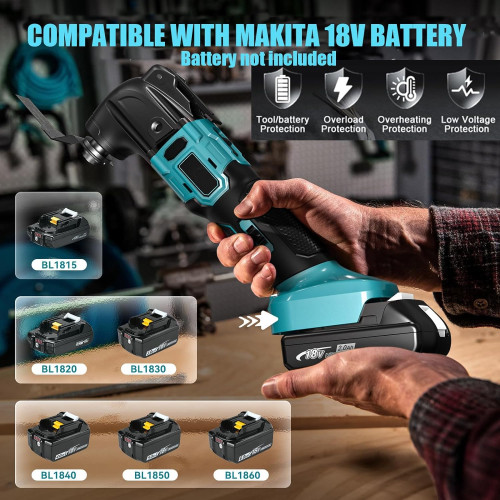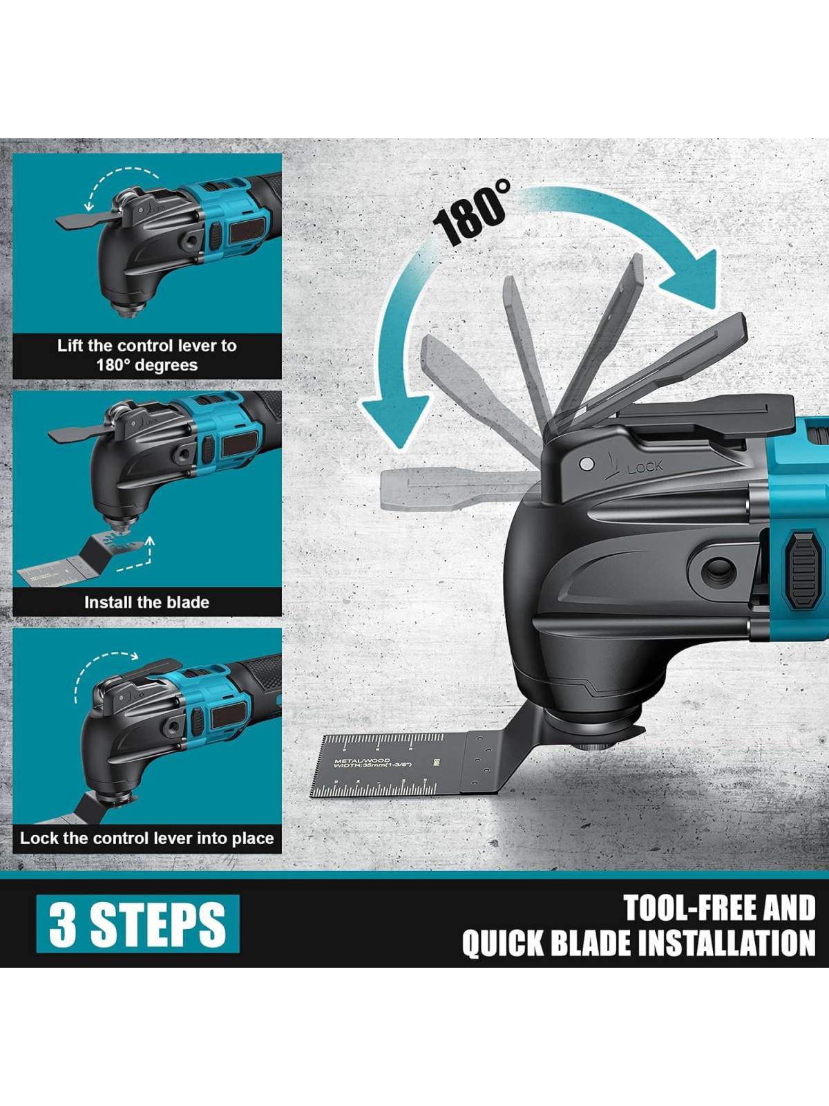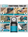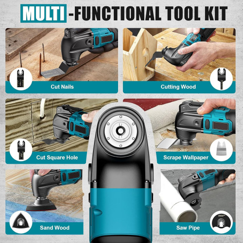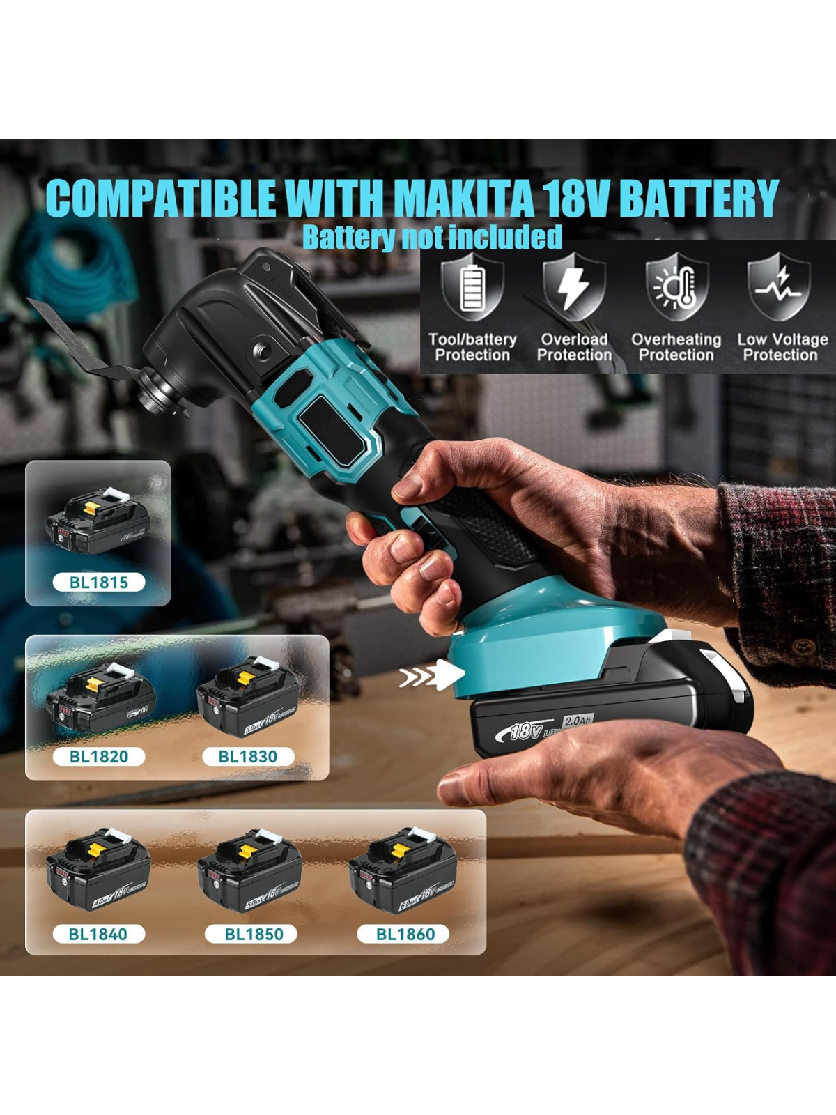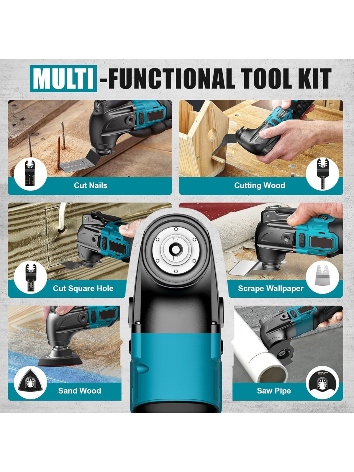 Verken de grenzeloze mogelijkheden van doe-het-zelf projecten met de Multitool, een veelzijdige en krachtige tool die is ontworpen om uw werkzaamheden te vereenvoudigen. Compatibel met Makita 18v accu's en uitgerust met 6 aanpasbare niveaus van oscillatie, biedt deze multitool de flexibiliteit en kracht die nodig zijn voor een breed scala aan toepassingen. Met 7 opzetstukken en 15 stuks schuurpapier is deze blauwe multitool uw go-to apparaat voor snijden, schuren, schrapen, en meer.