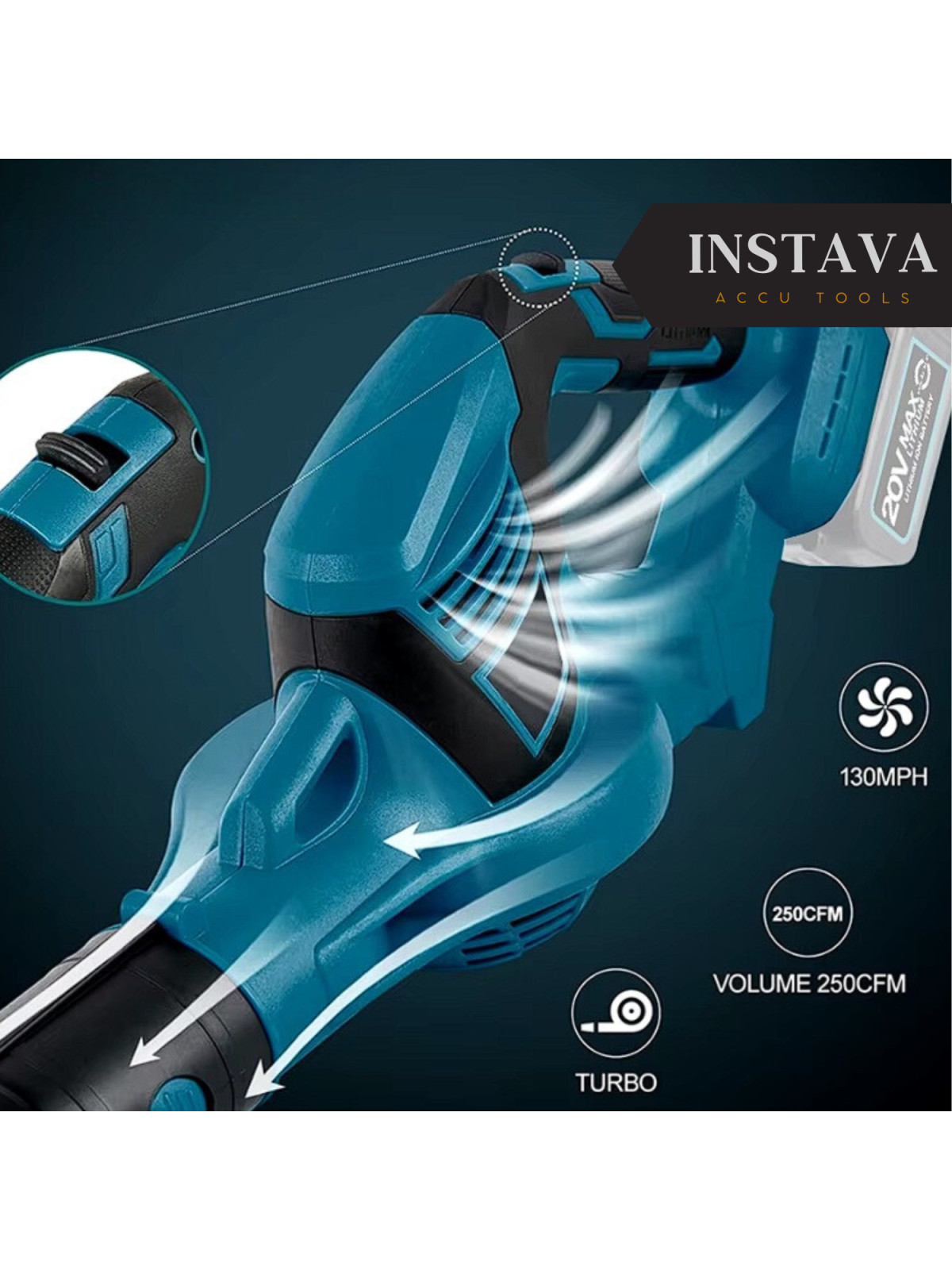 De Instava Accu Bladblazer heeft een vermogen van 800W en 18000RPM voor optimale prestaties.