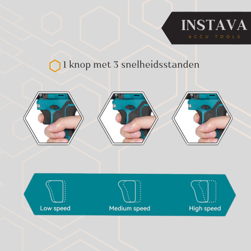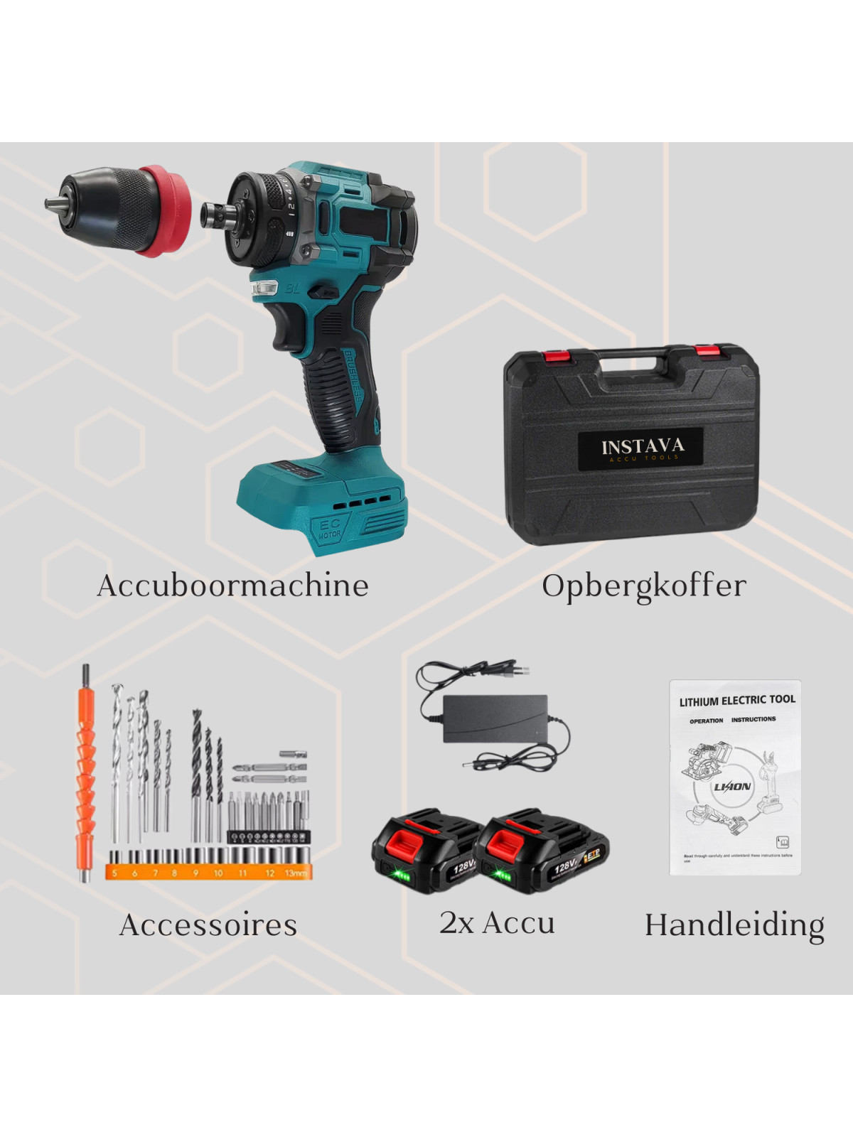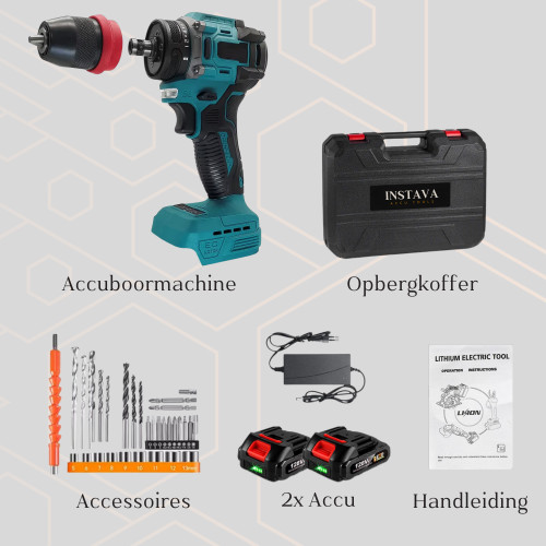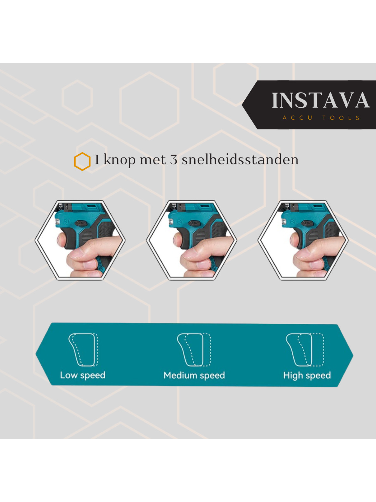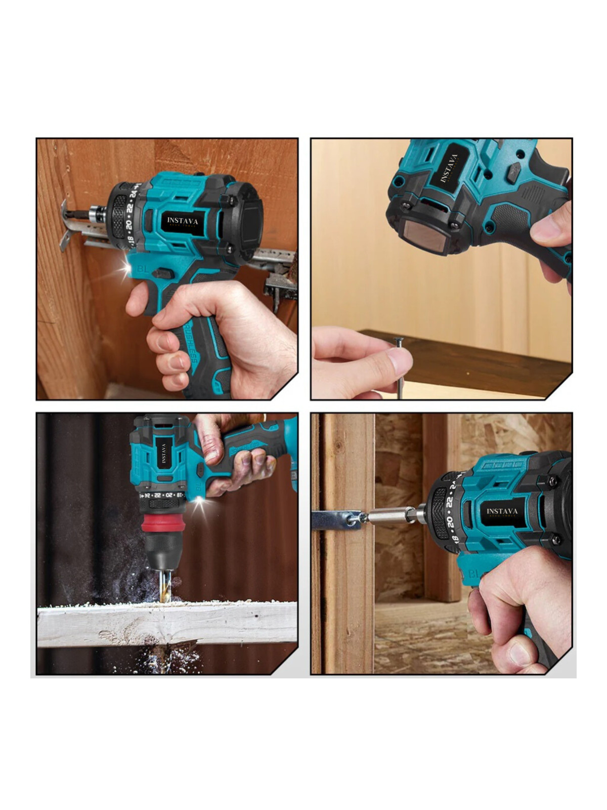 De Instava 2 in1 Accu Schroefboormachine combineert de functie van een elektrische schroevendraaier en een elektrische boormachine. Het kan niet alleen schroeven snel vast- of losdraaien, maar kan ook gaten in verschillende materialen boren, waardoor voldoende kracht wordt geboden om de meeste huishoudelijke of industriële toepassingen te voltooien.